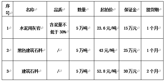 長(cháng)興通順礦業(yè)有限公司船茅岕礦山開(kāi)采的石料拍賣(mài),具體品種、數量、起拍價(jià)等詳見(jiàn)下表: